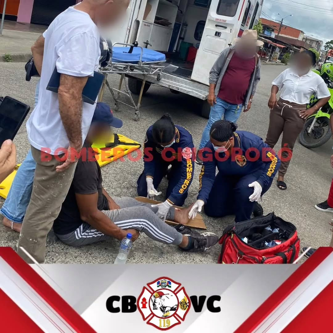El Cuerpo de Bomberos de Chigorodó atendió un accidente de tránsito en el barrio El Divino Niño, que dejó a una persona lesionada.