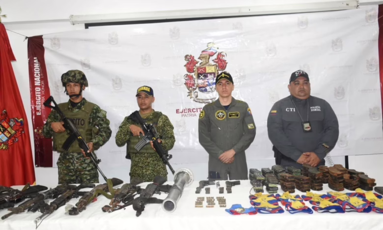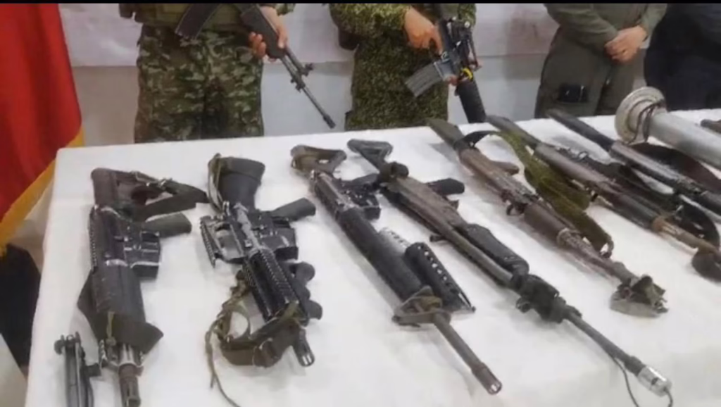 Durante el registro del área, las tropas lograron incautar un importante arsenal que demuestra las capacidades logísticas y de ataque de la estructura:
