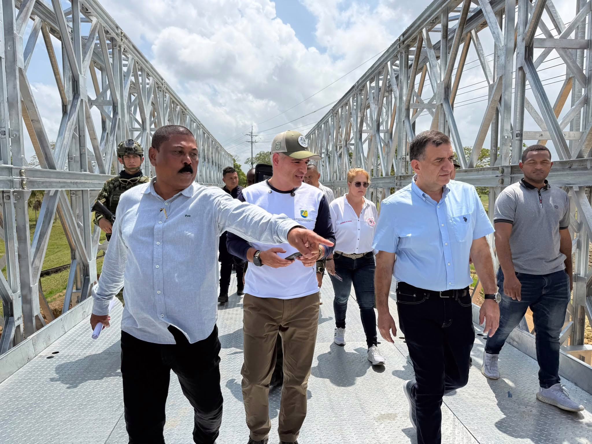 En un esfuerzo conjunto por restablecer la movilidad en el Urabá antioqueño, el alcalde de Necoclí, Guillermo José Cardona Moreno, y el gobernador de Antioquia, Andrés Julián Rendón, lideran a esta hora la inspección técnica de la instalación del nuevo puente militar sobre el río Mulatos.